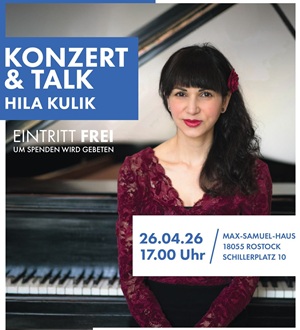 | Klavierkonzert Philipp Wisotzki „Bach to The Doors - 2” Donnerstag, 9. April 2026 um 18.00 Uhr, Einlass: 17.00 Uhr Eintritt: 12 € / 6 € (unter 18 Jahre, Schwerbehindertenausweis) / frei (Warnow-Pass, AStA-Kulturticket, Ehrenamtskarte) |